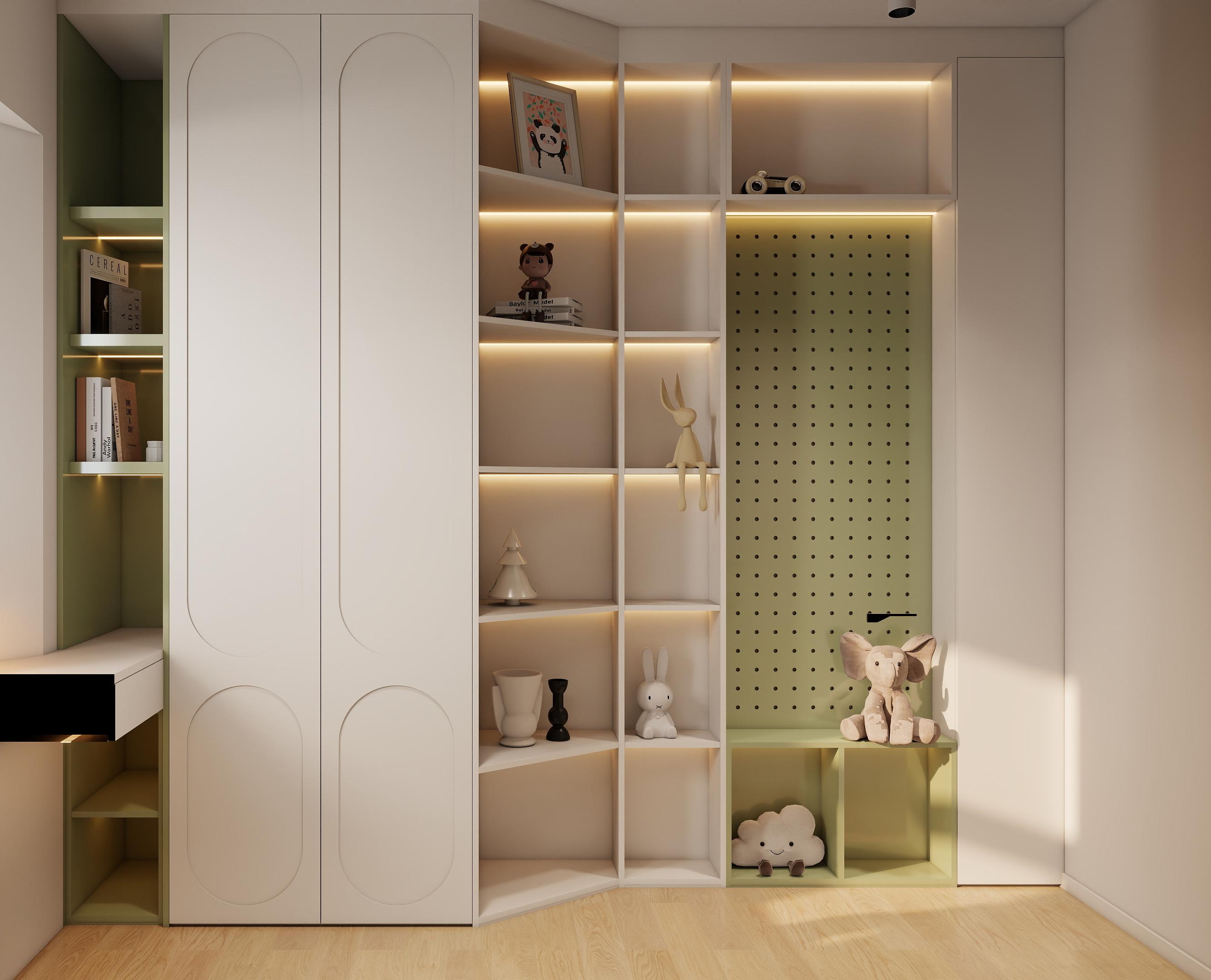 若卧室面积允许,可以通过在卧室内部设置隔断来划分出一个小房间。例如,在主卧中利用衣柜作为隔断,将卧室一分为二,一部分作为主卧休息区,另一部分作为儿童房或书房。衣柜可以采用到顶的设计,增加收纳空间,同时起到良好的隔断效果。