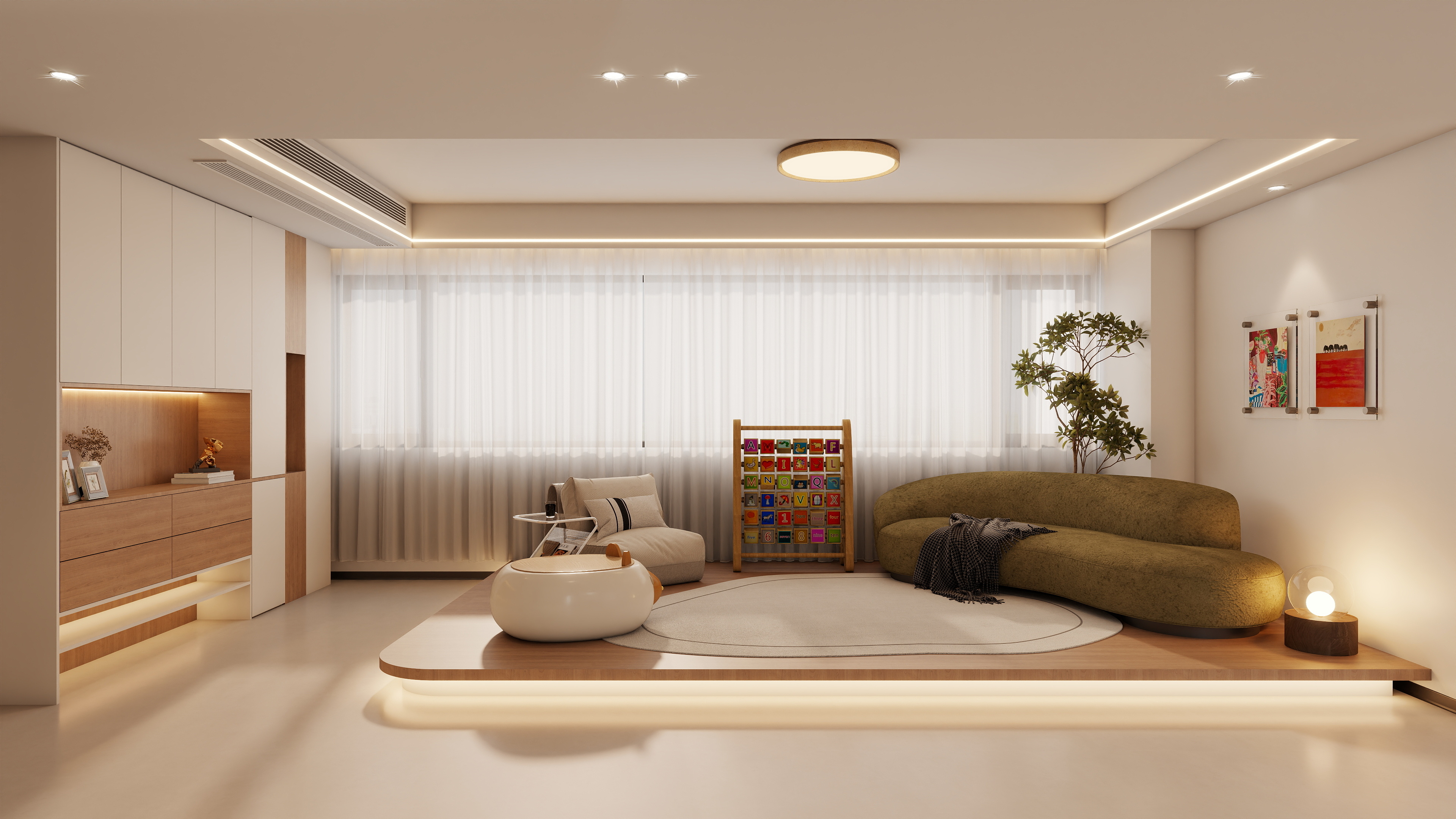 原木奶油风的精髓,在于对色彩、材质与光影的精准拿捏。色彩上,需以米白、奶咖、浅驼等低饱和度色调构建空间基底,通过墙面乳胶漆、地面微水泥或木地板、家具燕麦色系的层层递进,形成如奶油般绵密的视觉层次。材质选择则讲究自然与人工的平衡:橡木、胡桃木等实木的清晰纹理是风格灵魂,羊绒、亚麻、藤编等天然织物则通过肌理碰撞增强呼吸感;而金属、玻璃等现代材质的点缀,则能避免空间陷入单调。光影设计更是点睛之笔——无主灯布局通过轨道灯、落地灯、壁灯的组合打造层次光感,透光不透人的雪尼尔窗帘让自然光形成柔和漫反射,傍晚时分的暖光灯具则瞬间提升治愈力。