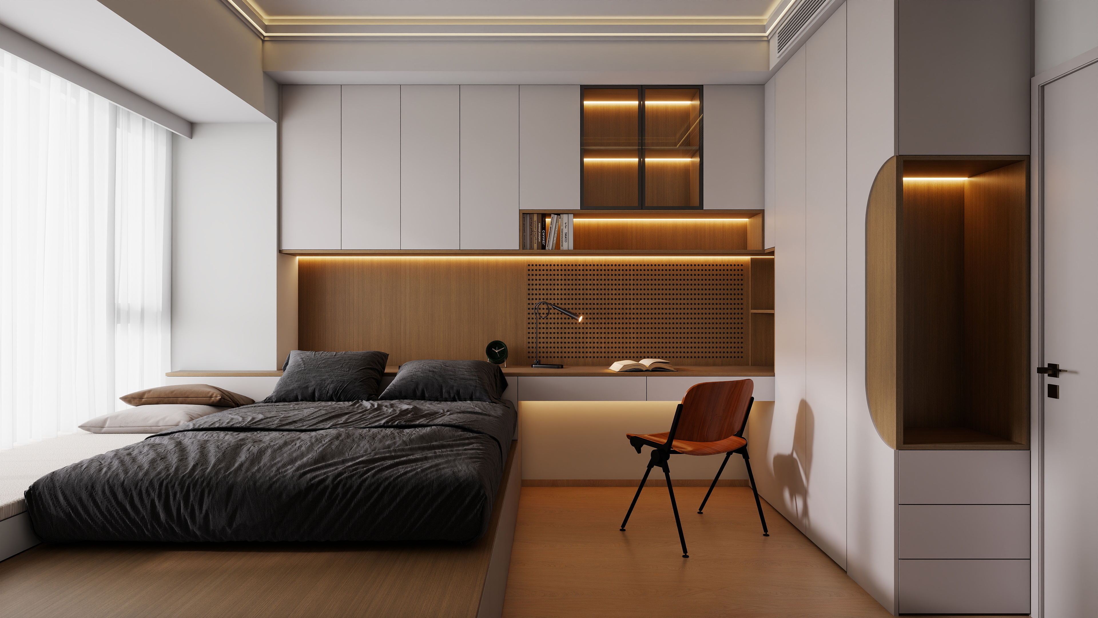 刮腻子和刷漆也有讲究。腻子至少要刮两遍,第一遍干透了才能刮第二遍,不然容易起皱。打磨腻子的时候要仔细,用 2 米靠尺靠着检查,平整度不够就得重新磨,尤其是打算做简约风格的,墙面不平整会特别显粗糙。刷乳胶漆前要把浮灰擦干净,建议先刷一遍底漆,能增强附着力,还能防止墙面返碱,底漆干了再刷两遍面漆,每遍都要等上一遍干透,刷的时候尽量少兑水,不然容易掉粉。要是贴壁纸或壁布,腻子干透后直接清理干净就行,胶水选糯米胶更环保。